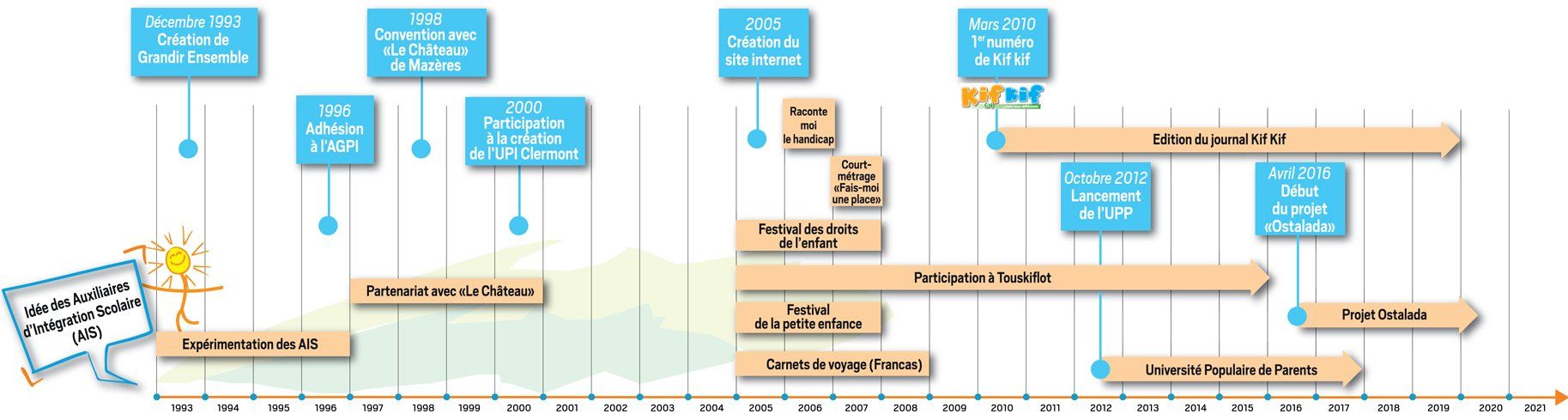 L'association « GRANDIR ENSEMBLE » a été créée en décembre 1993 par des parents d'enfants porteurs d'un handicap mental.